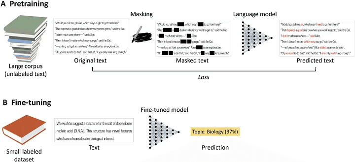 Image: Flow of a pre-trained and fine-tuned language model