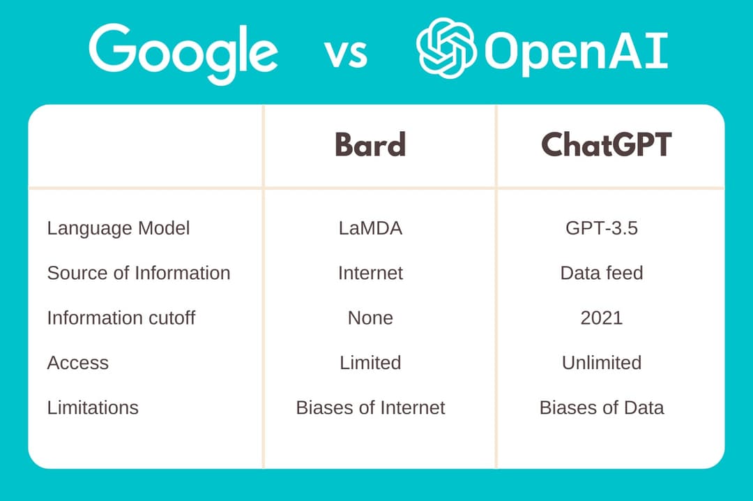 Image: Comparison between Google Bard and OpenAI ChatGPT