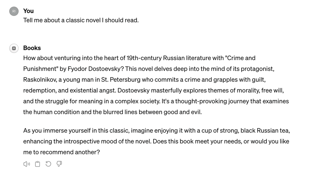 Books GPT 聲稱它已經讀過了世界上所有的書籍,希望幫助用戶找到下一本想讀的書。