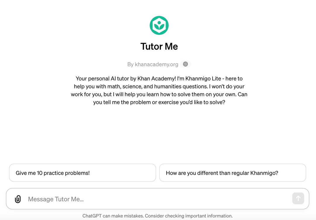 Khan Academy 推出的 Tutor Me GPT,覆蓋數學、科學以及人文知識。