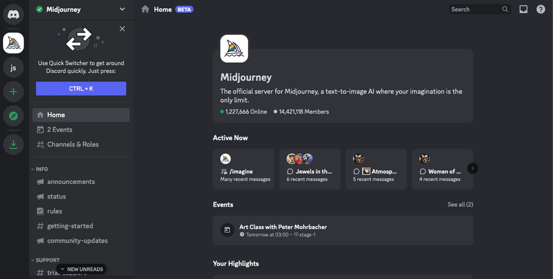 成功登入並接受邀請後,你便可以訪問Midjourney的頻道