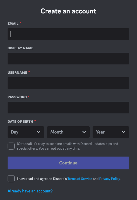 在 https://discord.com/register 中申請discord户口。