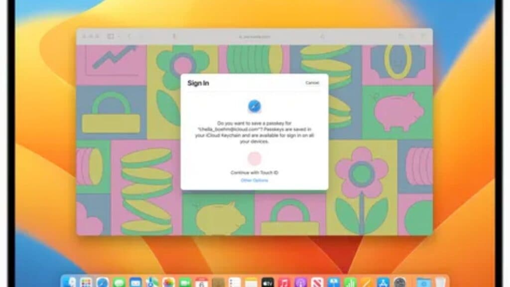 macOS Ventura中Safari將不用密碼都可以進行登錄,此舉可防止用戶被網絡釣魚或機器人攻擊。現在使用Face ID 、 Touch ID 或輸入設備 PIN 就足以登錄網絡上的各種服務。