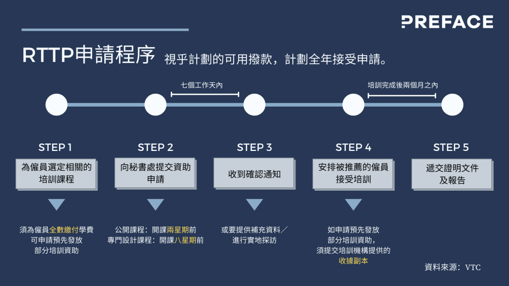 再工業化及科技培訓計劃(再工業化)是在創新及科技基金下的一個資助計劃,以(政府) 2:1(企業)配對形式資助本地企業員工接受高端科技培訓,簡單而言就是政府會資助RTTP認可課程3分之2的培訓費用!計劃主要針對與「工業4.0」有關的培訓,現在就由Preface為大家細究什麼是RTTP再工業化及科技培訓計劃!