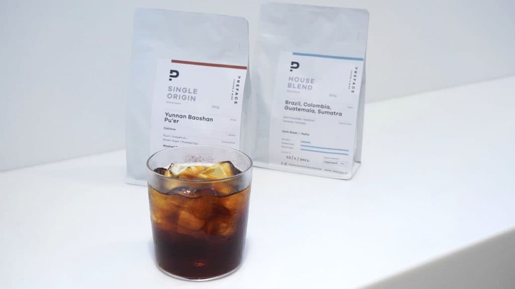 Preface定期會選用不同產區的咖啡豆給客人嘗鮮,為了特出不同產區特色,選用淺烘焙咖啡豆。而淺烘焙的咖啡豆密度比較高,水比較難穿透。所以比起日式深烘焙咖啡需要更幼細的研磨度,以及更長的時間來進行萃取。而Preface的冷泡咖啡比較適合直接飲用。