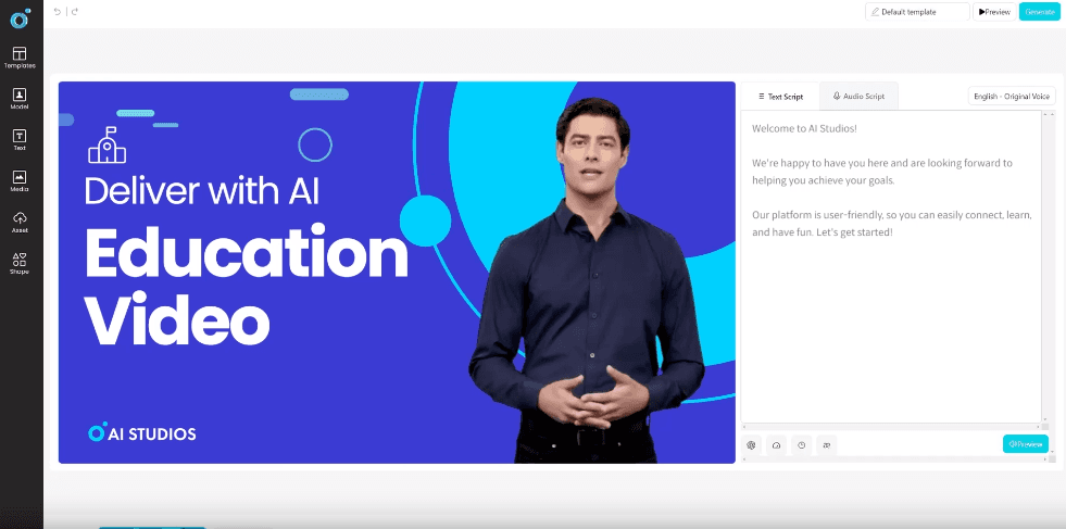 主打功能:生成 AI 人像短片的平台,適合快速生成教學短片