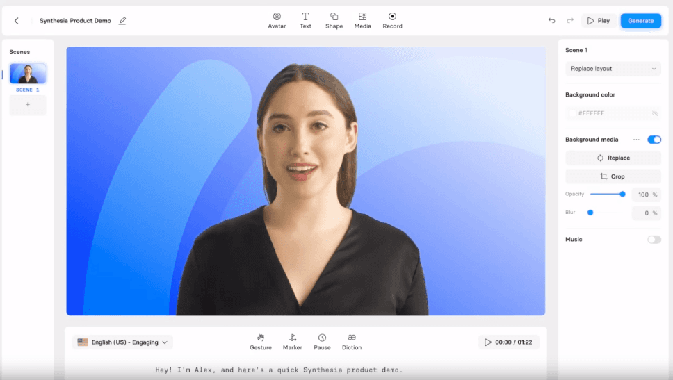 好處:簡化影片製作過程,只需5分鐘便可從文本製作成短片, 多語言支援。