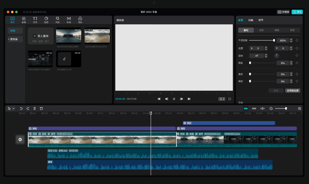 增添轉場特效: AI 剪片工具可以自動添加各種轉場特效,如淡入淡出、切換和旋轉等,使影片過渡更加暢順。