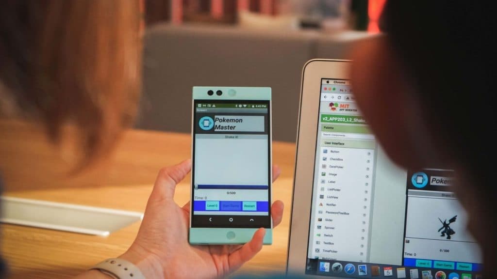 除了 Scratch,App Inventor 是另一種流行的積木型編程語言,有著可視化的友好界面,使用拖拽、放置和連接拼圖塊的方法來編寫程式,供幼兒開發應用程式,了解真實世界中Developer構思整個應用程式的流程、處理及應用數據的方法以及建造應用程式雛形的技巧,比起ScratchJr更複雜,適合5歲以上小朋友。