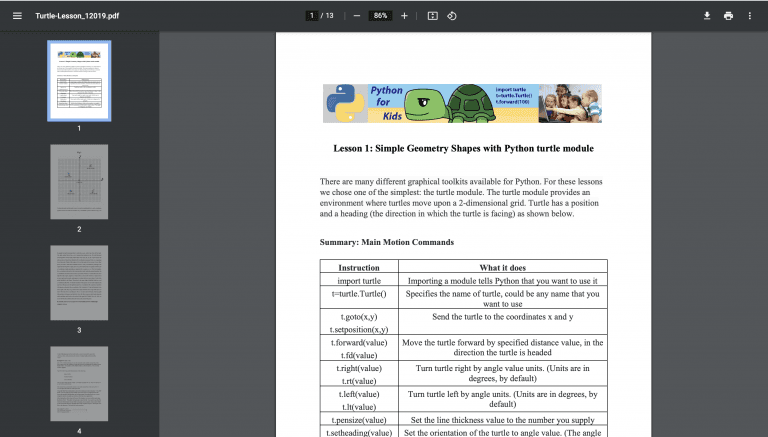 Python libraries are powerful and easy to use, for young learners, there are also plenty of fun libraries for them to explore. The “turtle” library is one of the great examples, which is like a drawing board for kids, which is really user friendly for beginners to experience drawing and plot with a few lines of codes. There are also plenty of fun game programming libraries of Python, as “PursuedPyBear” which children can learn to develop their own games in easy ways.