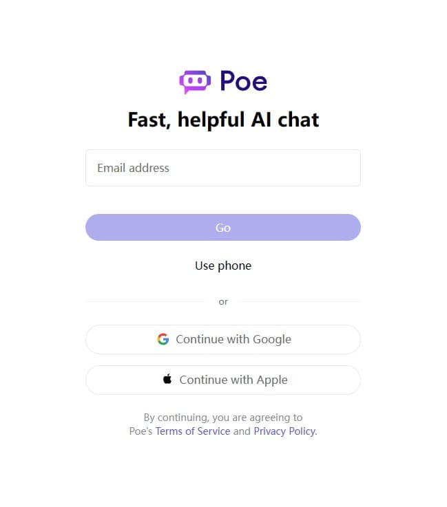 直接在瀏覽器輸入poe.com,就會進入如下界面: