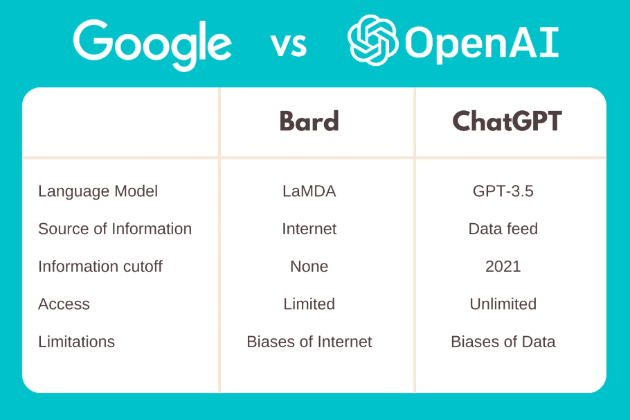 圖片:Google Bard 與 OpenAI ChatGPT 的比較