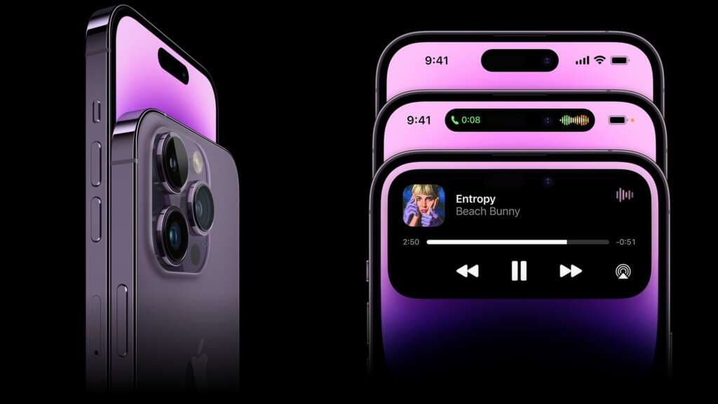 iPhone 14、 iPhone 14 Plus仍然保留瀏海設計,而iPhone 14 Pro、iPhone 14 Pro Max系列刪去瀏海設計,改以橫向藥丸形設計,收藏Face ID及前置感應器及鏡頭組件的位置縮小了31%,但同時又加入私隱燈,當應用程式會用到鏡頭或定位時,就會顯示藍色﹑綠色﹑橙色的指示燈。而iPhone 14 Pro、iPhone 14 Pro Max系列用上超級 Retina XDR 顯示器,峰值亮度可達 2000 尼特,亮度提升達 2 倍,就算在陽光下也可以看得更清晰。