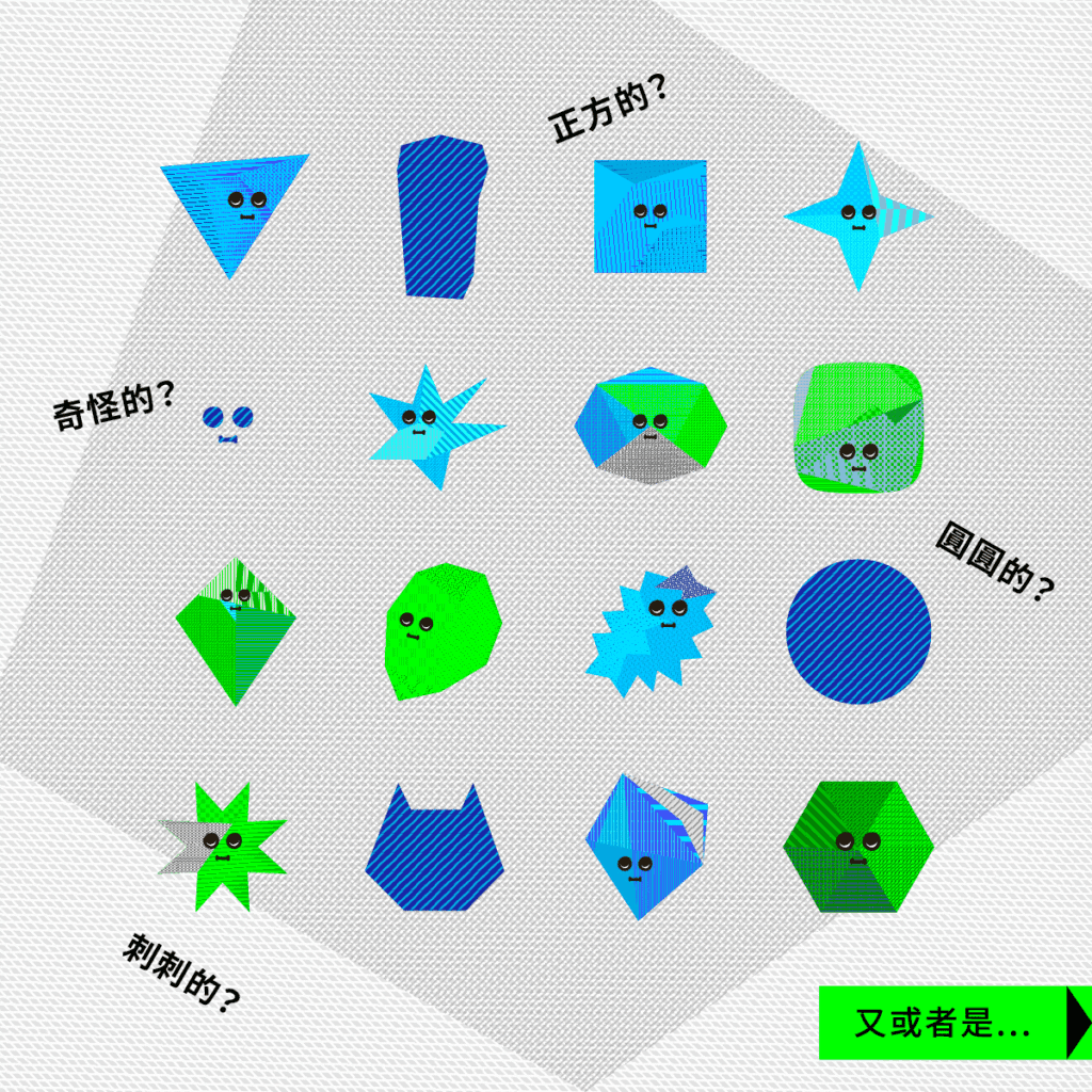 「測測你是什麼形狀的人」有16個結果,而16種幾何形狀其實是依照MBTI 16型人格測驗為基礎。背後的編碼亦有跡可尋。